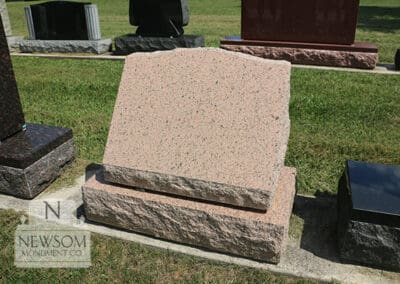 Slant memorials sit above grade with an angled face for easy reading, while flat and bevel markers are low-profile options often chosen where height is limited. Each can be personalized with names, dates, symbols, and borders—and set alone or paired with bases for added presence.